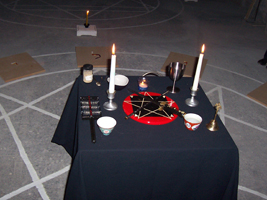 ![]() Pentakel en altaar met rituele 'tools'. | |||